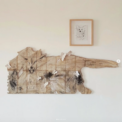 Y, como un lobo que corre y aúlla bajo la luna llena, siguiendo un instinto que no sabe hacia dónde le lleva, pero hacia ahí va, aparecen las obras que forman parte de Transiciones (2023-), adentrándose en esa búsqueda, transitando emociones, miedos y sin sentidos, como la vida y la creación que va siendo, desplegándose como un poema en este preciso momento. De ese sin sentido ecléctico surge, de forma paralela, el mundo de Freedonia.